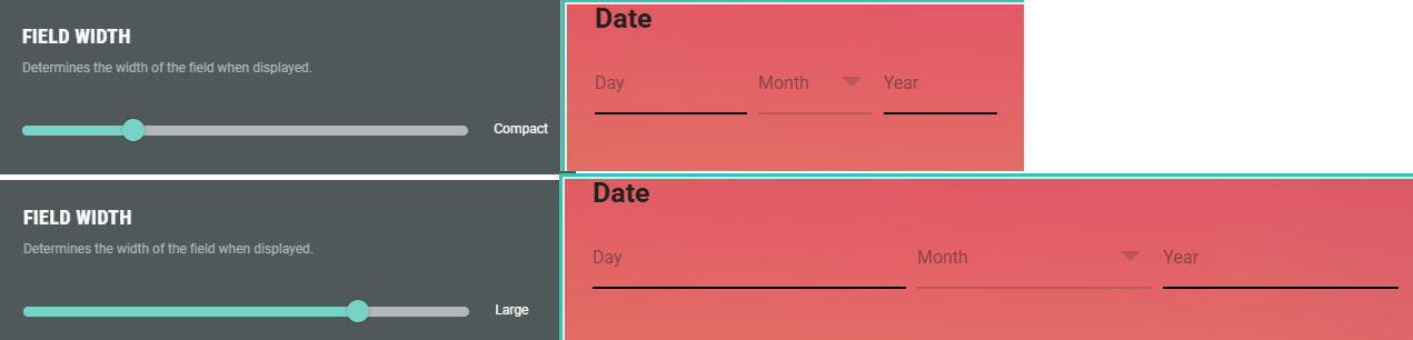 - On the Design tab, you can define the field width of the Date fields by dragging the slider to the left or right (check the preview window on the right to verify the desired field size).