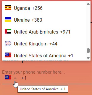 With the selection of countries, Experience participants will see the proper country flags, country names and country codes when filling out the phone number.