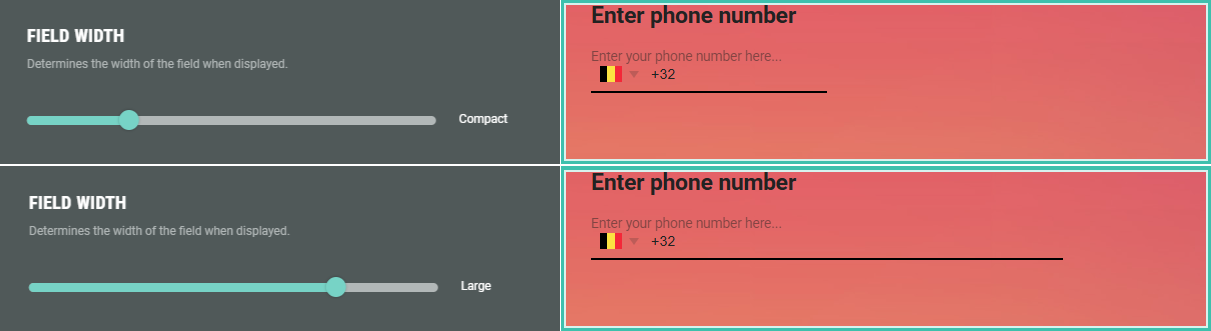 - On the Design tab, you can define the field width by dragging the slider to the left or right (check the preview window on the right to verify the desired field size).