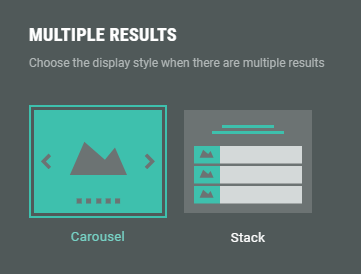 - Carousel — Displays the results as a horizontal carousel that can be cycled through. Users can manually navigate through the results using left/right arrows or pagination dots.