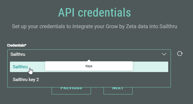 - The next step shown depends on the number of Sailthru API Keys configured.