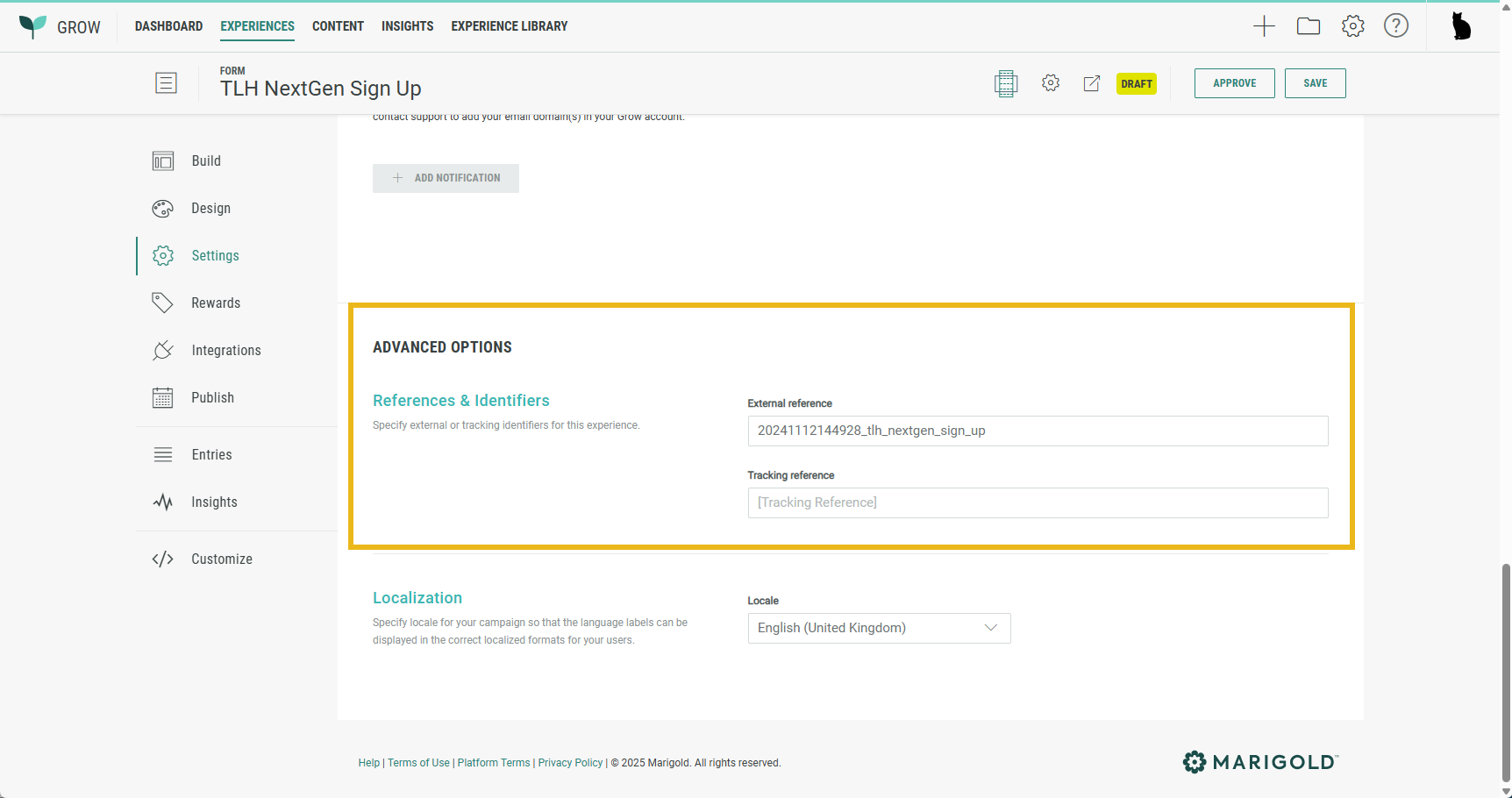 * The ExternalRef ID is autogenerated by our system, but you can enter your own code or reference by navigating to your Experience Settings > Advanced Options > References & Identifiers.
