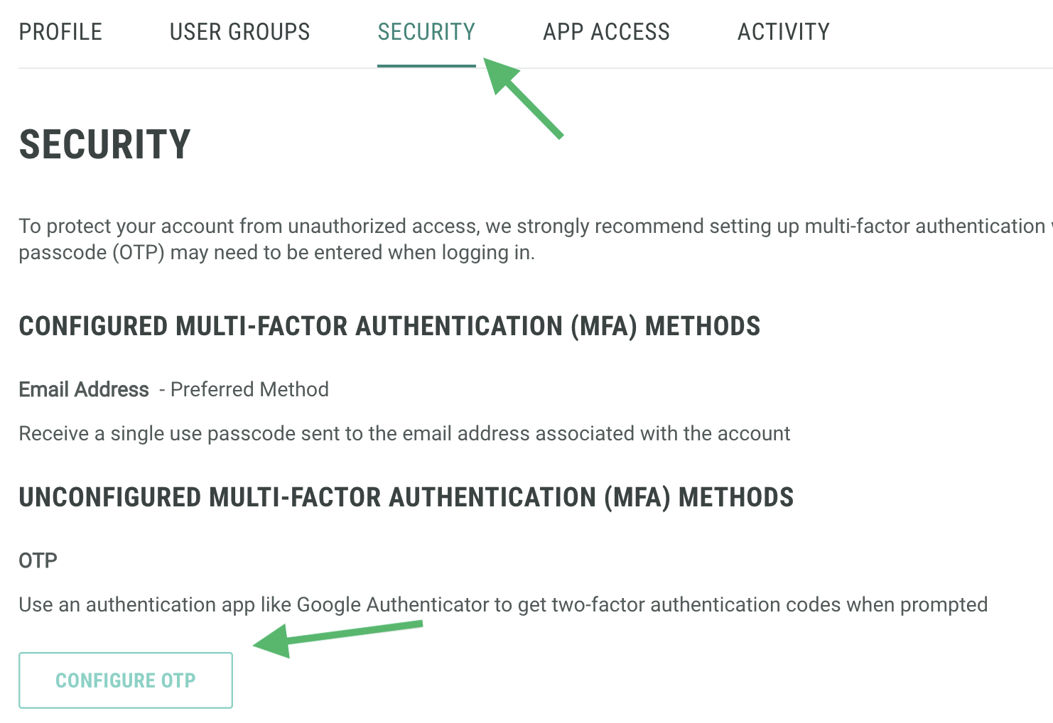 Click Configure OTP. The Configure OTP pop-up window is displayed.