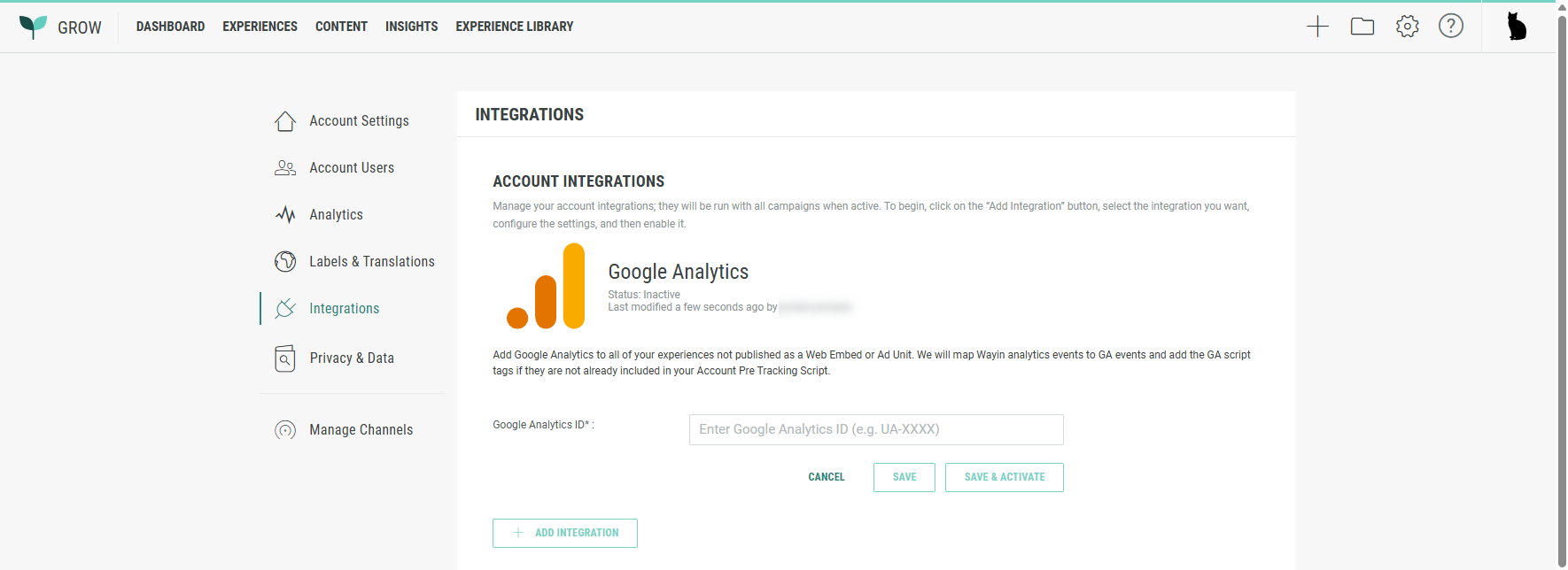 To add a Google Analytics integration in Grow, execute the following steps: