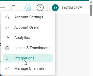 - Click on the Gear icon in the top navigation bar and select Integrations from the list of available options.