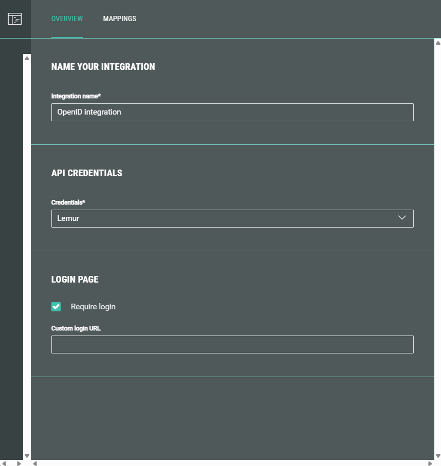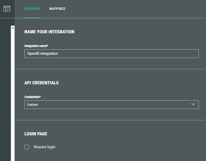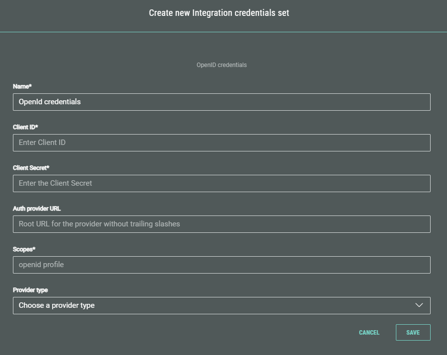 To set up an integration in Experiences with OpenID, first an Integration credentials set needs to be configured.