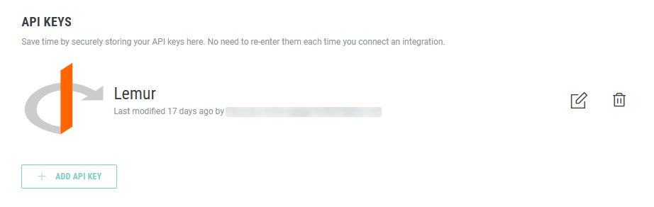 - On the Integrations page, in the API Keys section, click on + Add API Key.