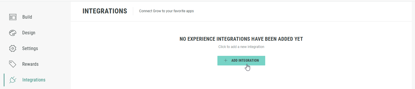 - On your Experience screen, click on Integrations in the left-hand navigation.