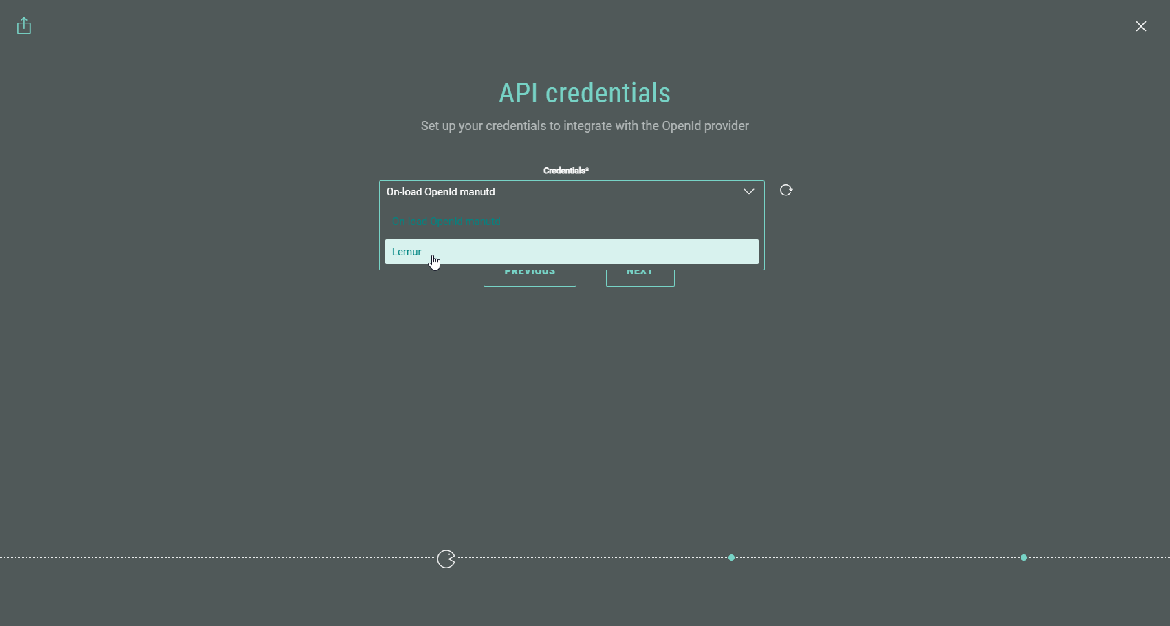 - An API credentials step is shown only when more than one OpenID API Key has been configured. If so, select an OpenID API Key here. Then click Next.