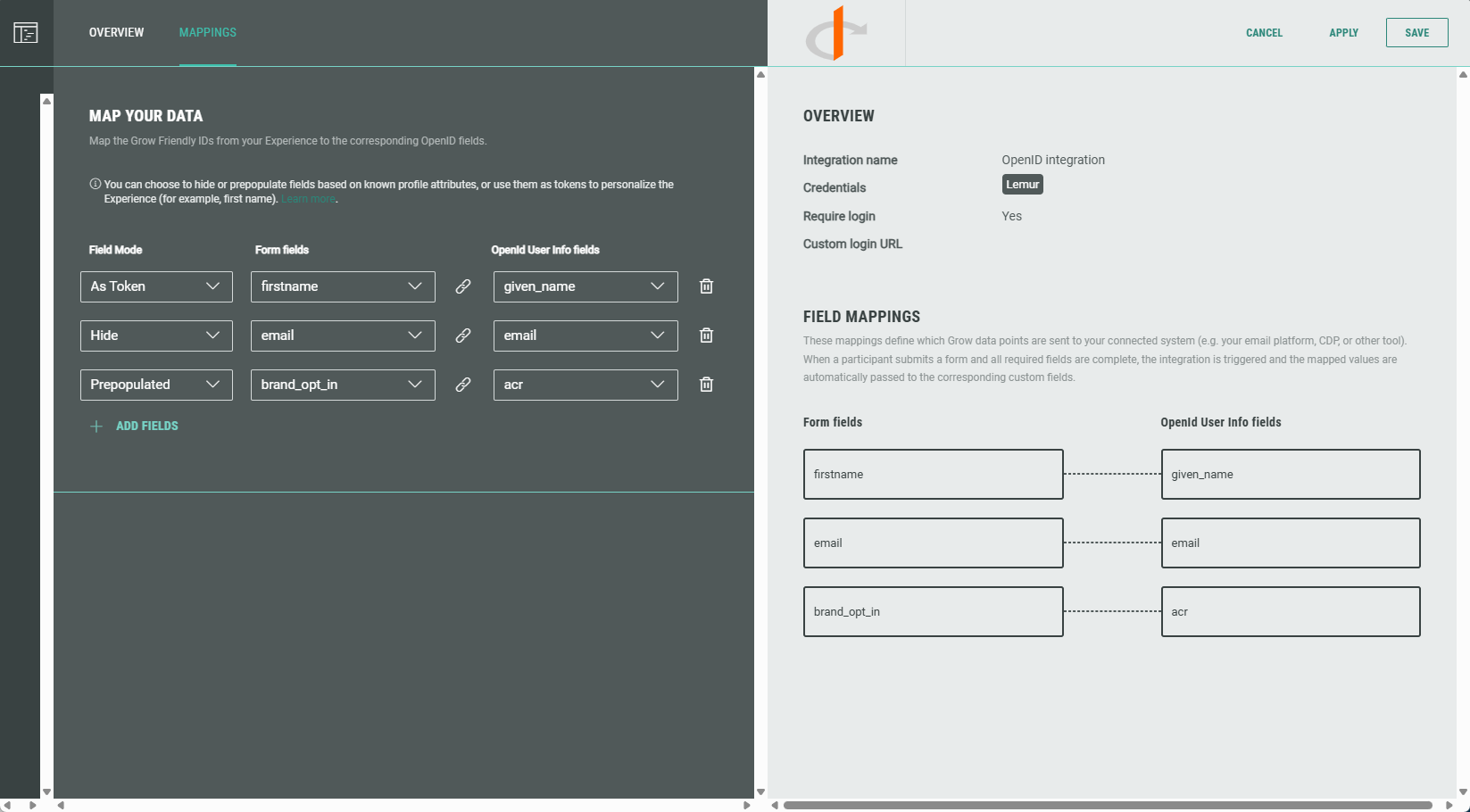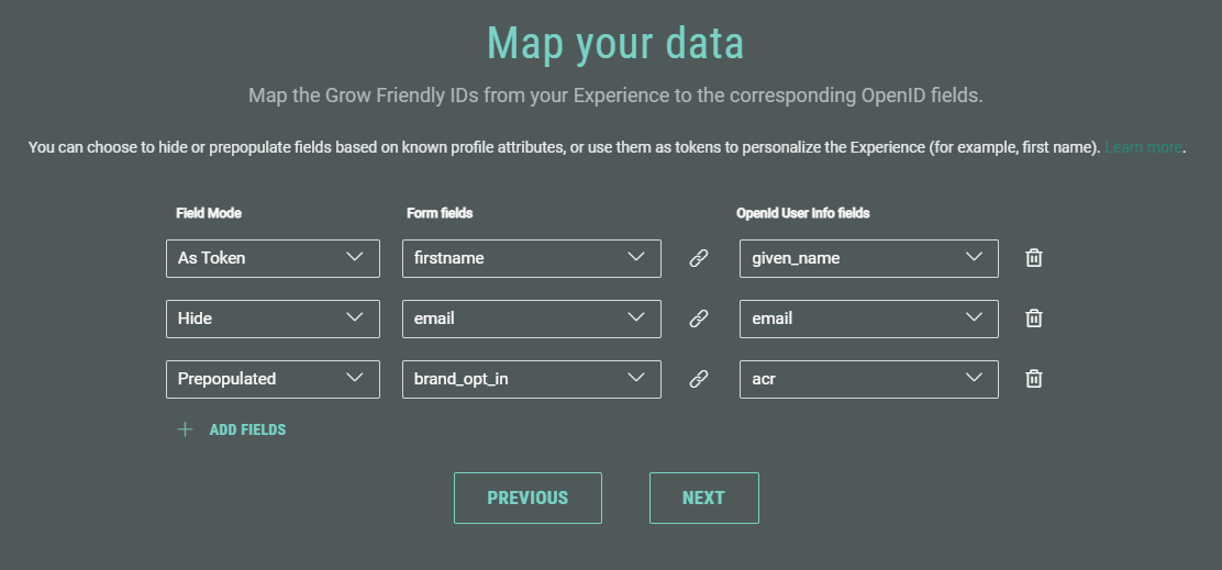- Map the Grow Friendly IDs from your Experience to the corresponding OpenID fields.