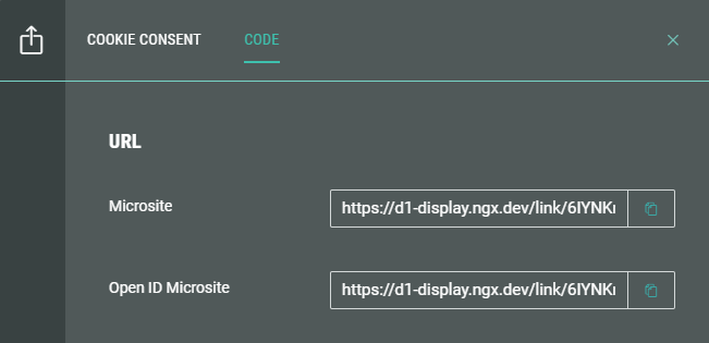 - Besides the regular Microsite URL, the Code tab also shows an OpenID Microsite URL.