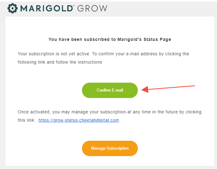 You will find a message entitled Activate your Zeta status page subscription with the message content as follows: