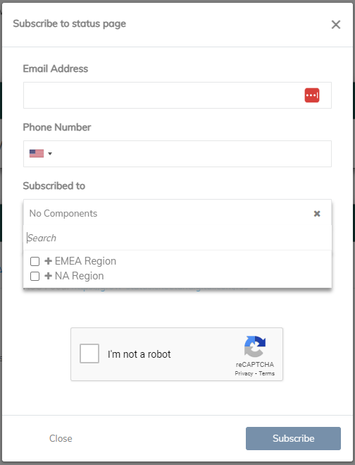 In the next input box you can choose the Components you want to subscribe to. These are simply the regions: EMEA and NA. You can choose 1 or both regions as required.