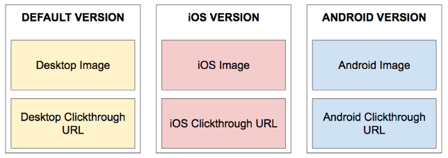 In this example, a LiveImage campaign is set up with 3 different versions: Default (Desktop), iOS, and Android. Each of these images have device specific clickthroughs. The element has the following targeting rules set up: