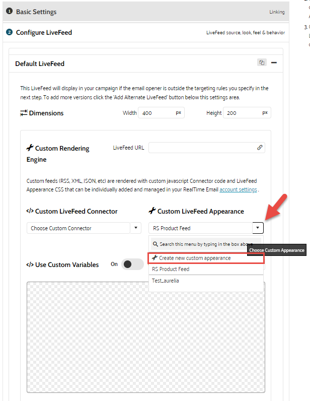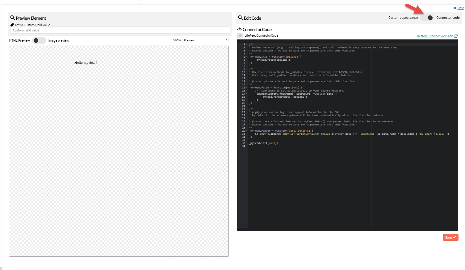 LiveFeed - Create and Configure Custom CSS And Connector Code