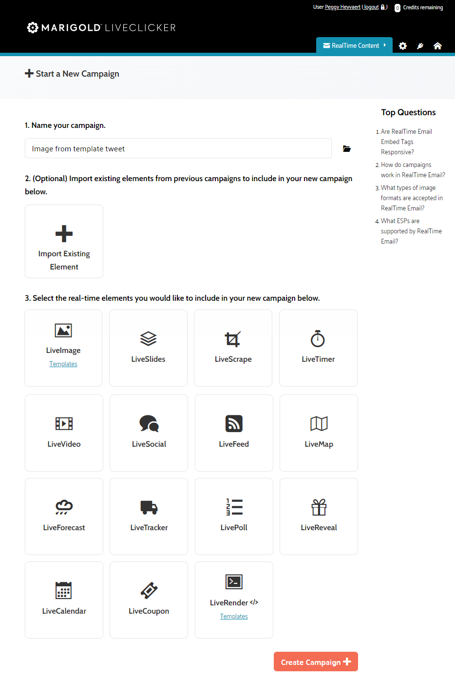 From the top menu, click Liveclicker Content drop-down and select +New Campaign.