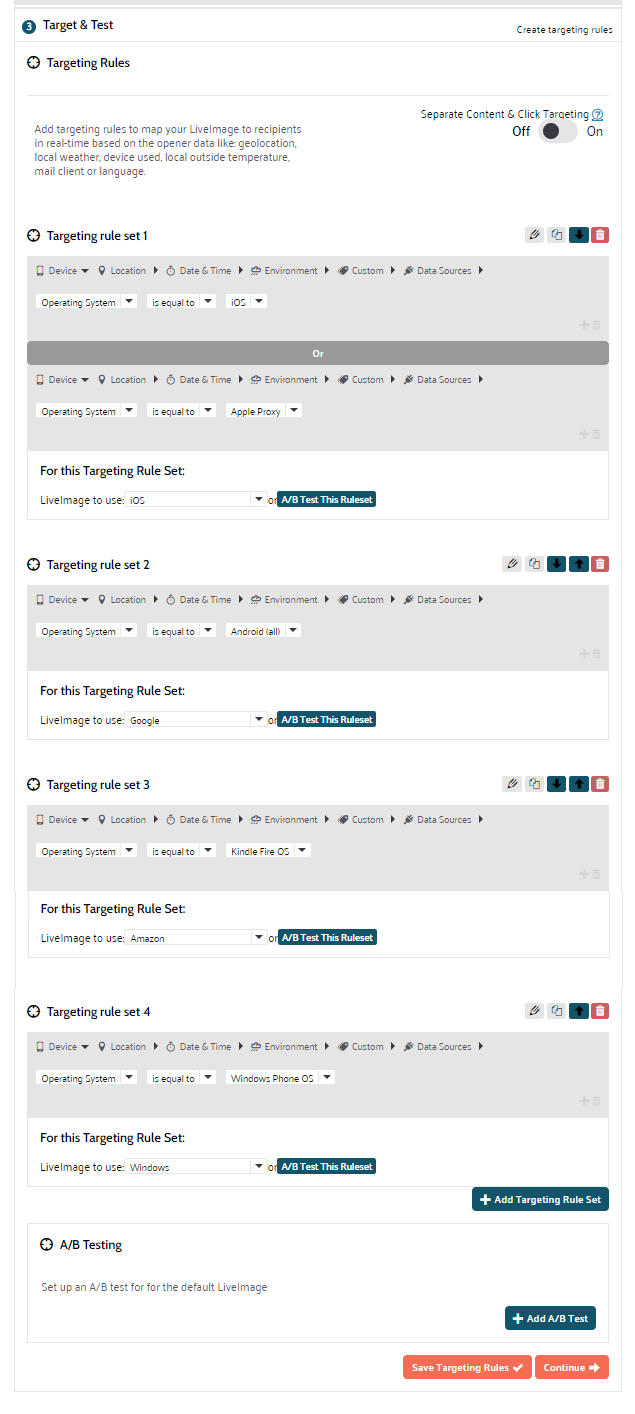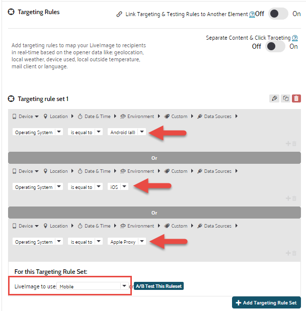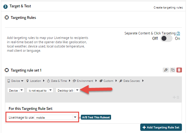 Pre-configured Targeting rules to target all mobile openers with the mobile image version.