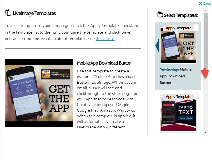 6. On the right, check the Apply template check box for the template you wish to use in your campaign.