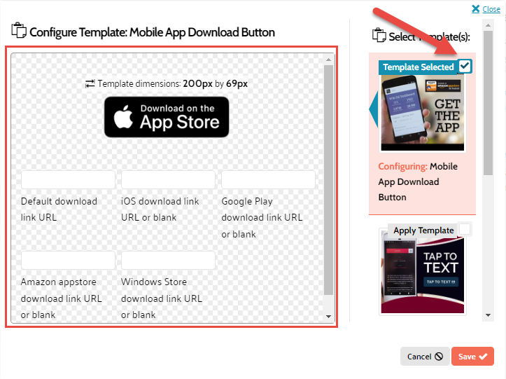 Your Mobile App Download Button LiveImage will be automatically created with the following configuration: