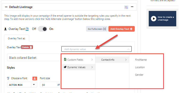 You can personalize the overlay text of your LiveImage with information either from your ESP or from data imported via CSV or API.