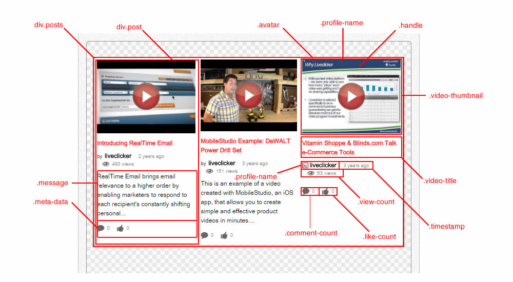 LiveSocial appearances come in three different presentation themes by default: Complete, Simple and Minimal. Themes are pre-built templates you can slightly modify, however, if you need a custom presentation it is appropriate to create your own CSS.