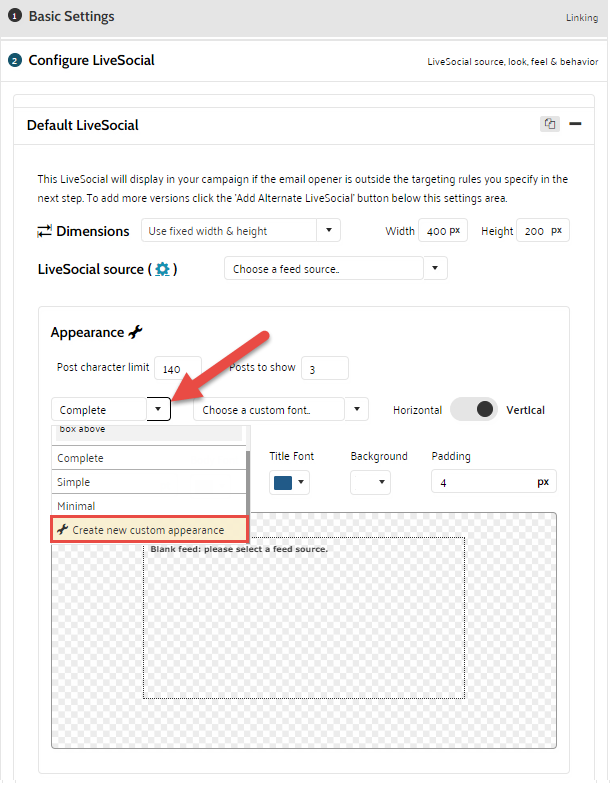 1. Click on the appearance drop-down and select Create new custom appearance.