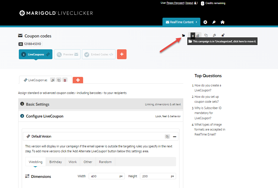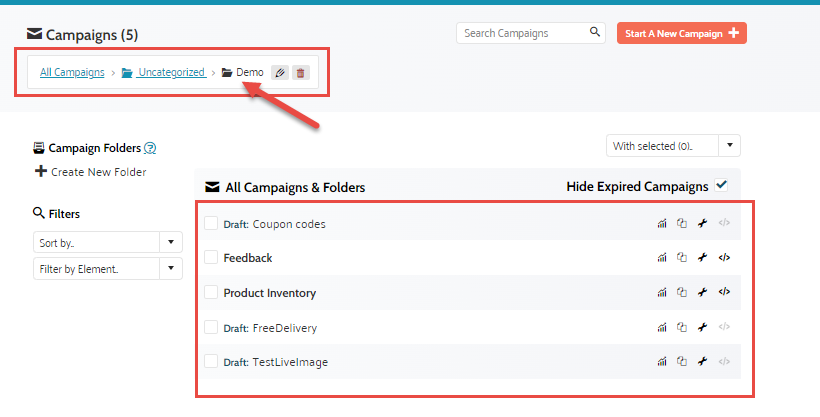 1. Upon creating a new campaign, a folder can be assigned. Click the folder icon to access the folder structure and select a folder: