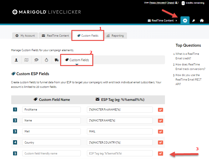 a) Go to Account Settings (gear icon found in the top menu), and next to Custom Fields>Custom fields.
