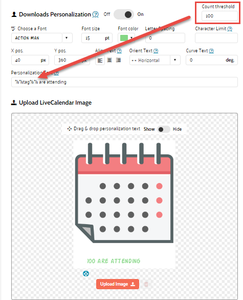 3. Now that your event fields have been set up, you can next choose to personalize the way in which the number of downloads of the calendar event is displayed on the calendar invite. This is a great option to convince people to accept the invite, as it creates a certain pressure to also accept the invite.