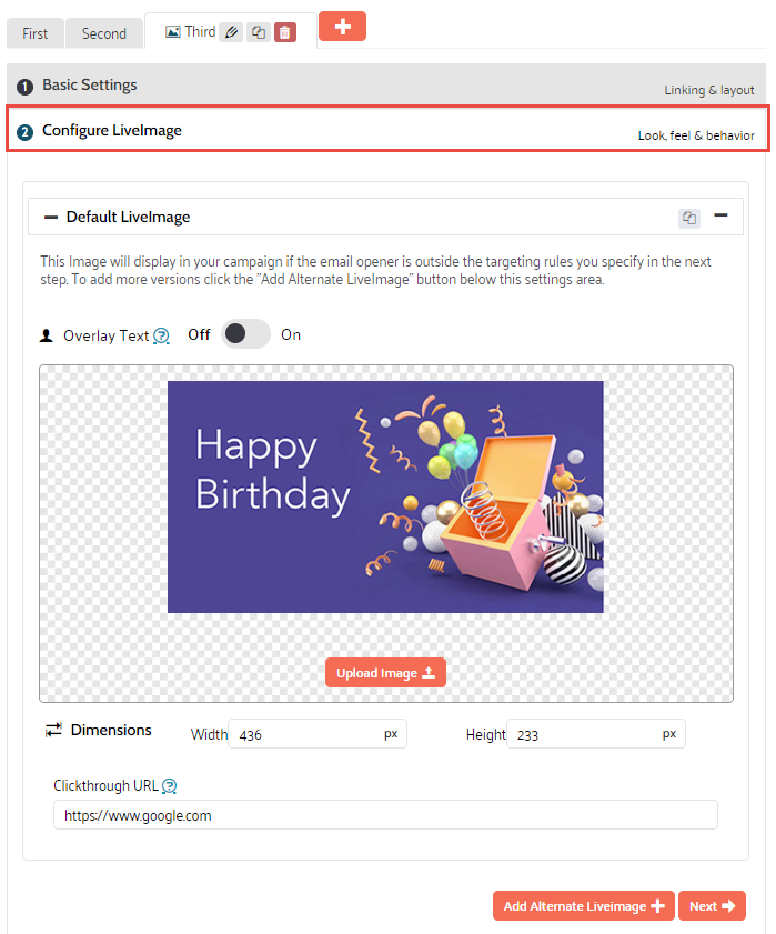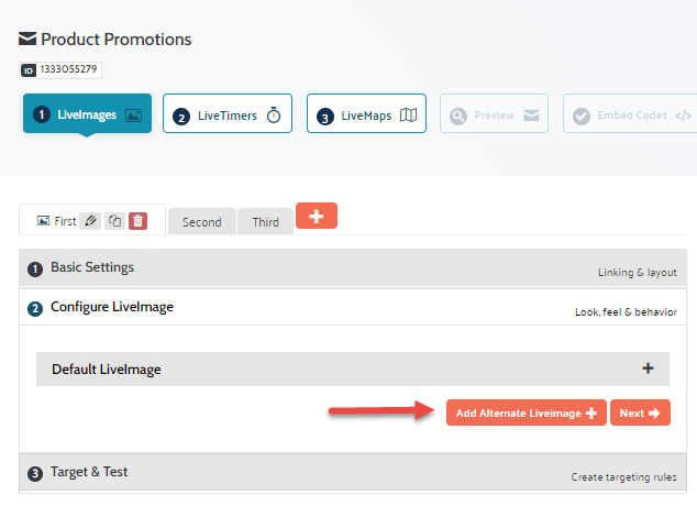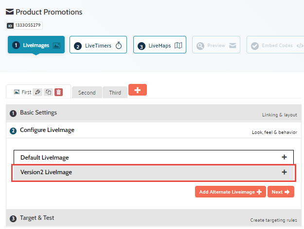 At this point you can either add an alternative version of the LiveImage or move on to the targeting and testing section.