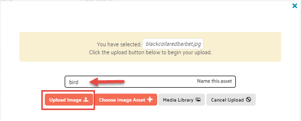 2. Once the image has been selected, you can rename it and upload it into your element:
