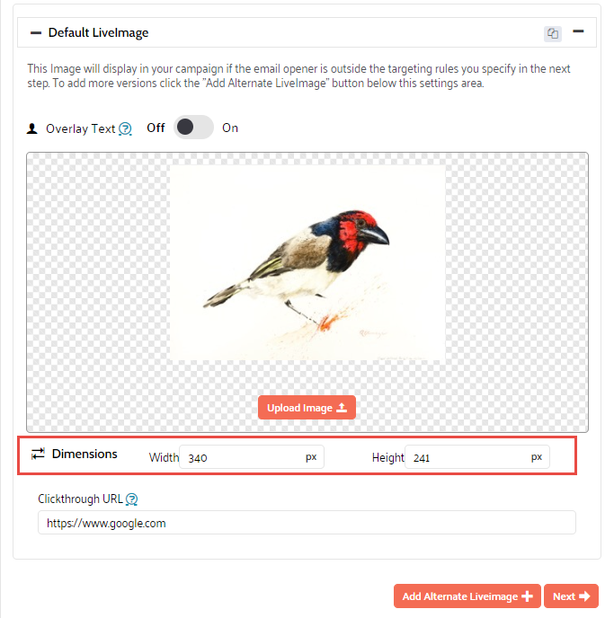 4. If you selected the clickthrough URL option in the Basic settings, you can set that URL now. This will allow viewers of the image to click it and go straight to the set URL.