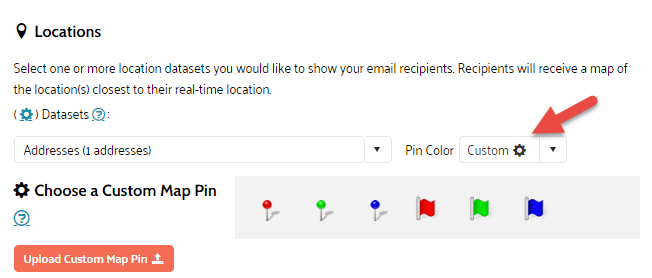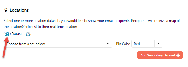 Note: If there are no location datasets stored yet, you can upload one by clicking the Gear icon.