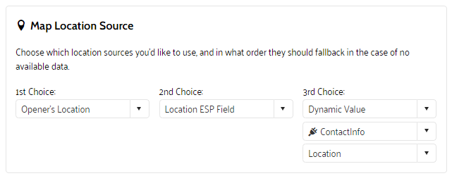In this example, the opener's current location will be used to define the closest location. If it cannot be detected, the location ESP field will be used. If that data is not available, data from a dynamic value will be used. If all three options fail, the fallback image is displayed.