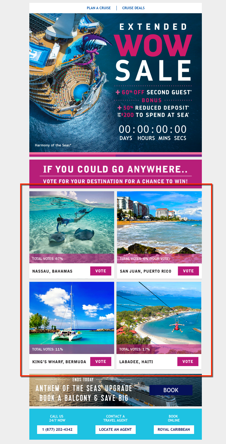 3. When users reopen the email after already voting in the poll, they will see the results image which will be linked directly to the preset clickthrough URL.