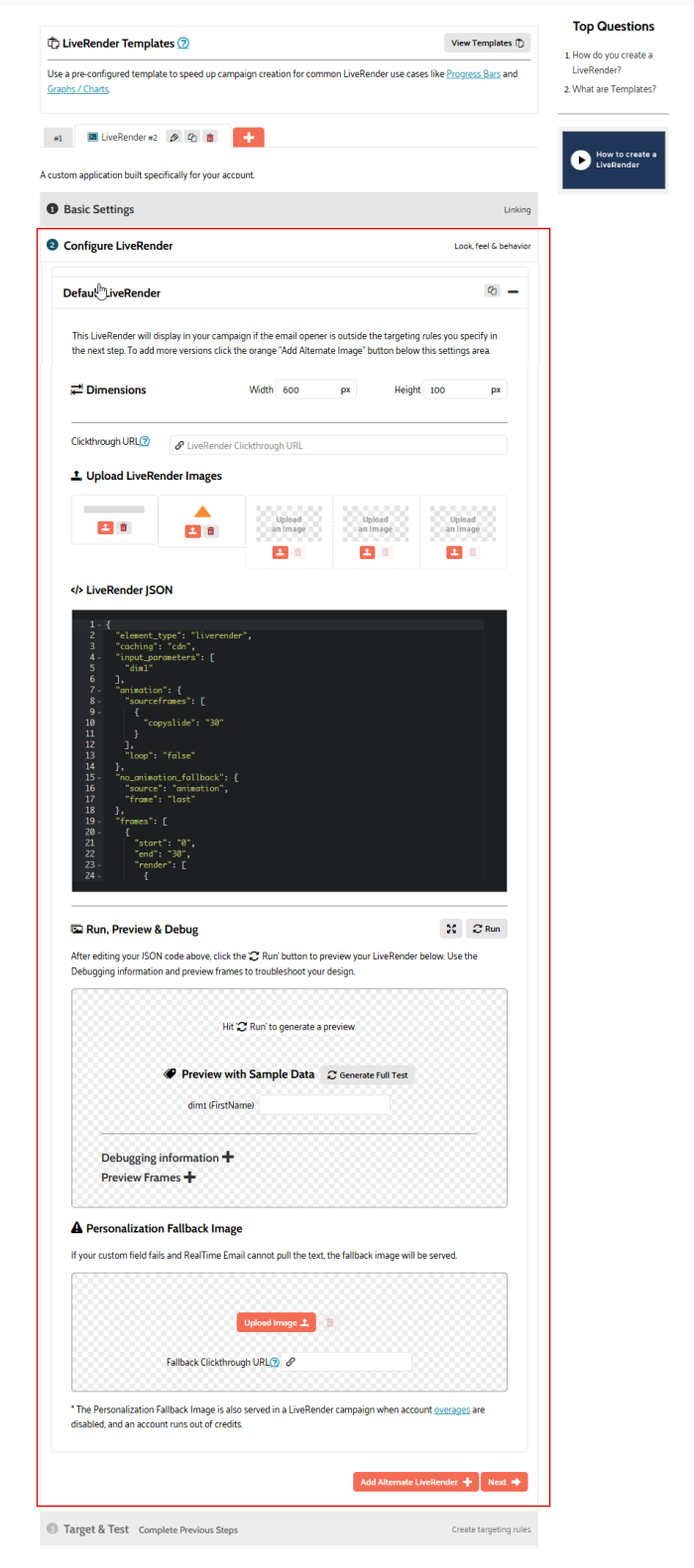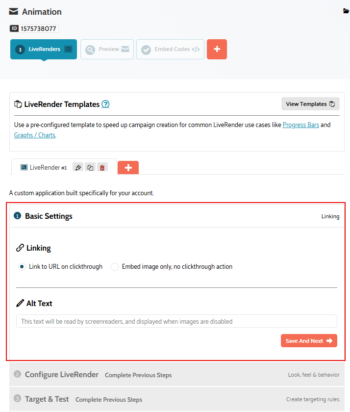 In this topic, we will discuss the different configuration options specific for the LiveRender as well as the preview and embed codes. Check out the topic Create a new campaign first for more information on how to initially create a campaign.