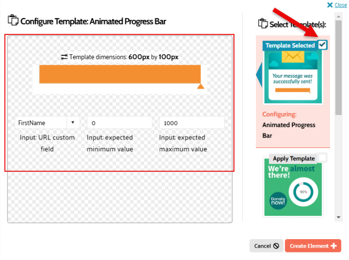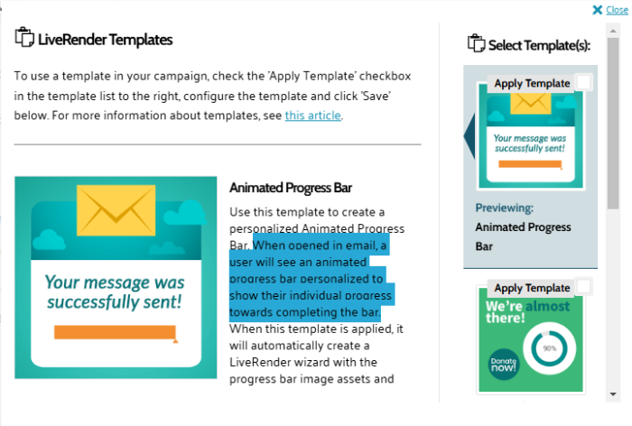 - Animated Progress Bar — When opened in email, a user will see an animated progress bar personalized to show their individual progress towards completing the bar.