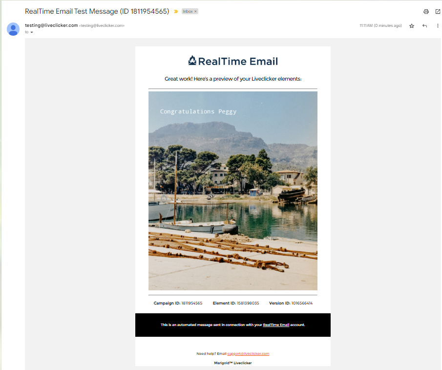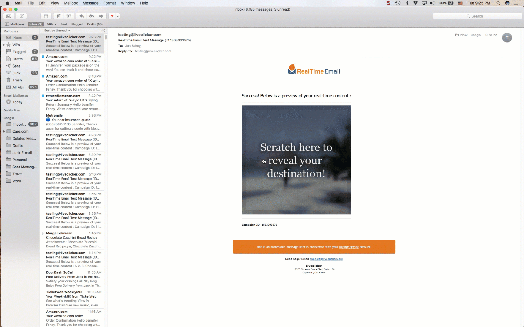 LiveReveal without the landing page experience — The images are rendered in the email and there is no peel-off animation or option to scratch the image to reveal. There is a difference in experience depending on the mail client.