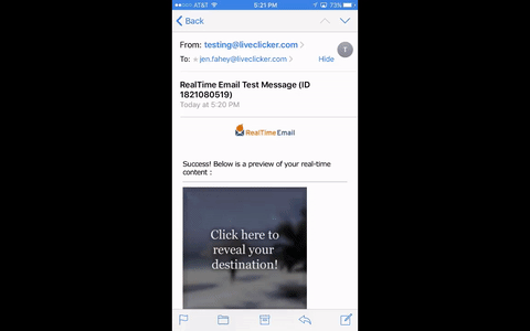 The iOS Optimized LiveReveal with the Landing Page Experience gives an enhanced experience to openers in the native email client of iOS devices. All other openers in email clients other than the native email client on iOS devices receive the same email experience as the non-iOS Optimized Landing Page experience above.