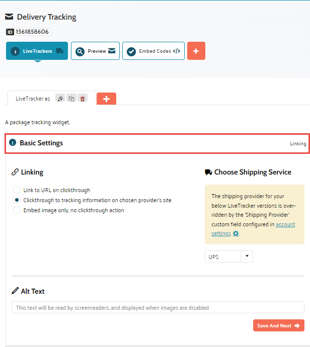 Clickthrough to tracking information on a chosen provider's site — This is the default option and ensures the recipient will be taken to the chosen provider's site that will feature the tracking info. When this option is selected, a clickthrough URL is generated automatically.