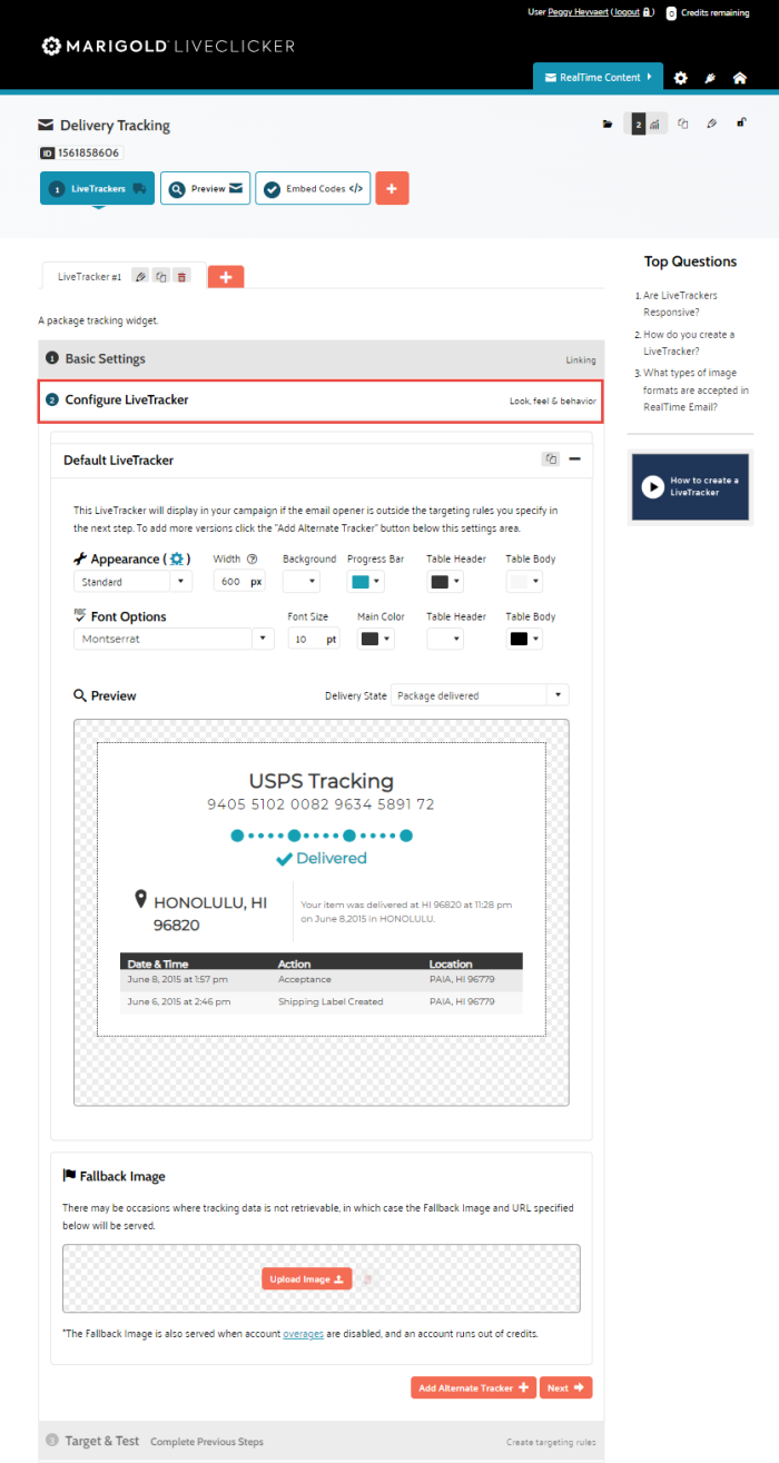 Or, if additional versions of the LiveTracker element are required, click Add alternate Tracker and repeat the steps 1 to 7.