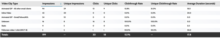 - Animated GIF - Gmail/Yahoo/AOL — The animated GIF is served to email clients that support GIFs but not full-sized videos.