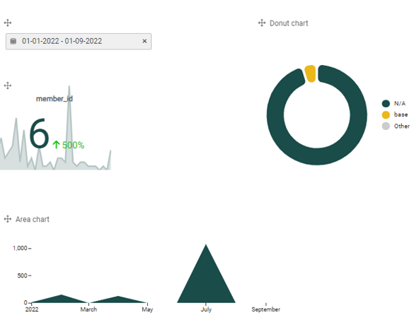 As an example of a common custom dashboard that customers often use, consider a KPI dashboard. Below is an example of how to set up a KPI dashboard end to end, where the total number of members is displayed as well as the evolution of new members over time.