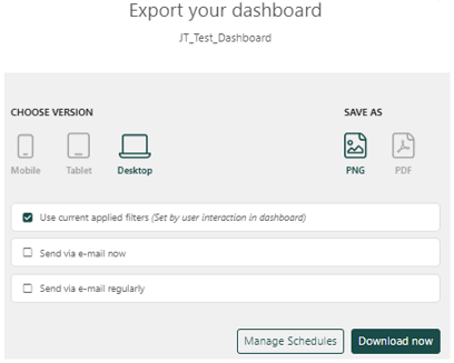 You can also share dashboards by exporting them as PDF or PNG, and define the format based on the device being used.
