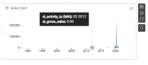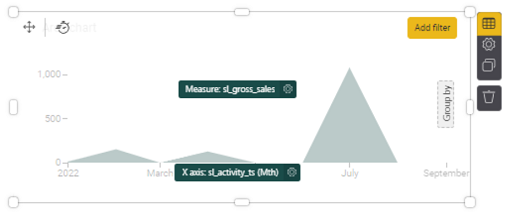 - For Measure, select gross_sales (click on Activity in the right, then scroll down to find gross_sales or search for it in the search bar), and drag and drop it into the Measure box.