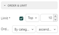 For a Bar or Column chart, you have the option to limit the values to the top or bottom x values. Under the Settings for that particular chart, click on Order & Limit in the options menu at the right. In the below example, the limit has been set to the top 10 values and ordered by Category in an ascending order.