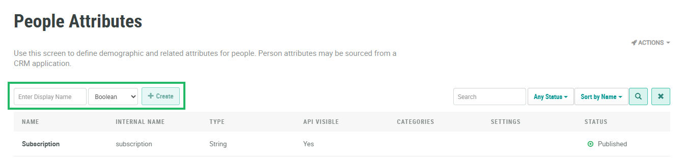 Note: If you intend to use this Attribute to manage a recipient's eligibility to be contacted, select the Message Subscriptions Category. Message Subscriptions is a special Member Attribute Category reserved for Subscription Fields.