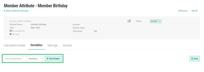 1. Navigate to the Variables tab of the Member Attribute Details screen.