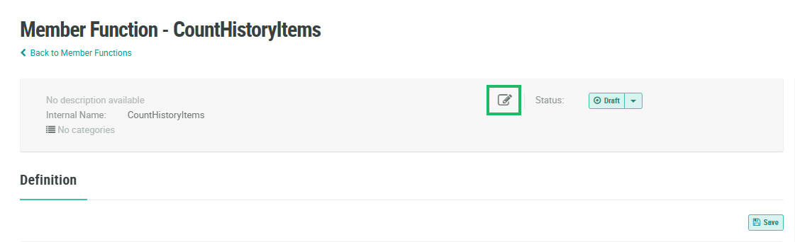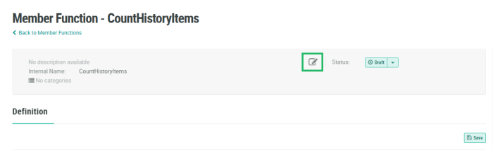 On the Member Functions screen, search for and select the desired Member Function (see Search for a Member Function for more information on the available search options). The Member Function Details screen is displayed.