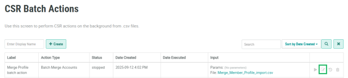 3. Next to the desired Batch Action, click the Edit icon. The Edit CSR Batch Actions pop-up window is displayed.